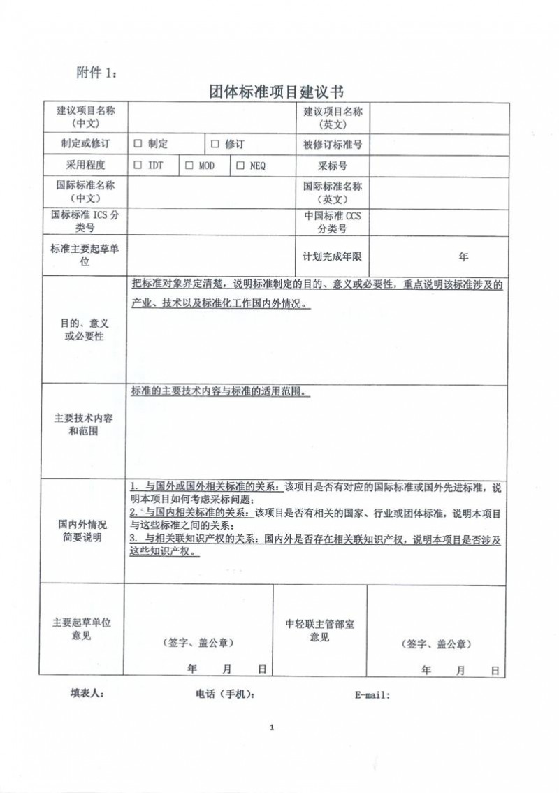 關于征集2020年中國輕工業聯合會團體標準計劃項目的通知(中輕聯綜合〔2019〕395號)