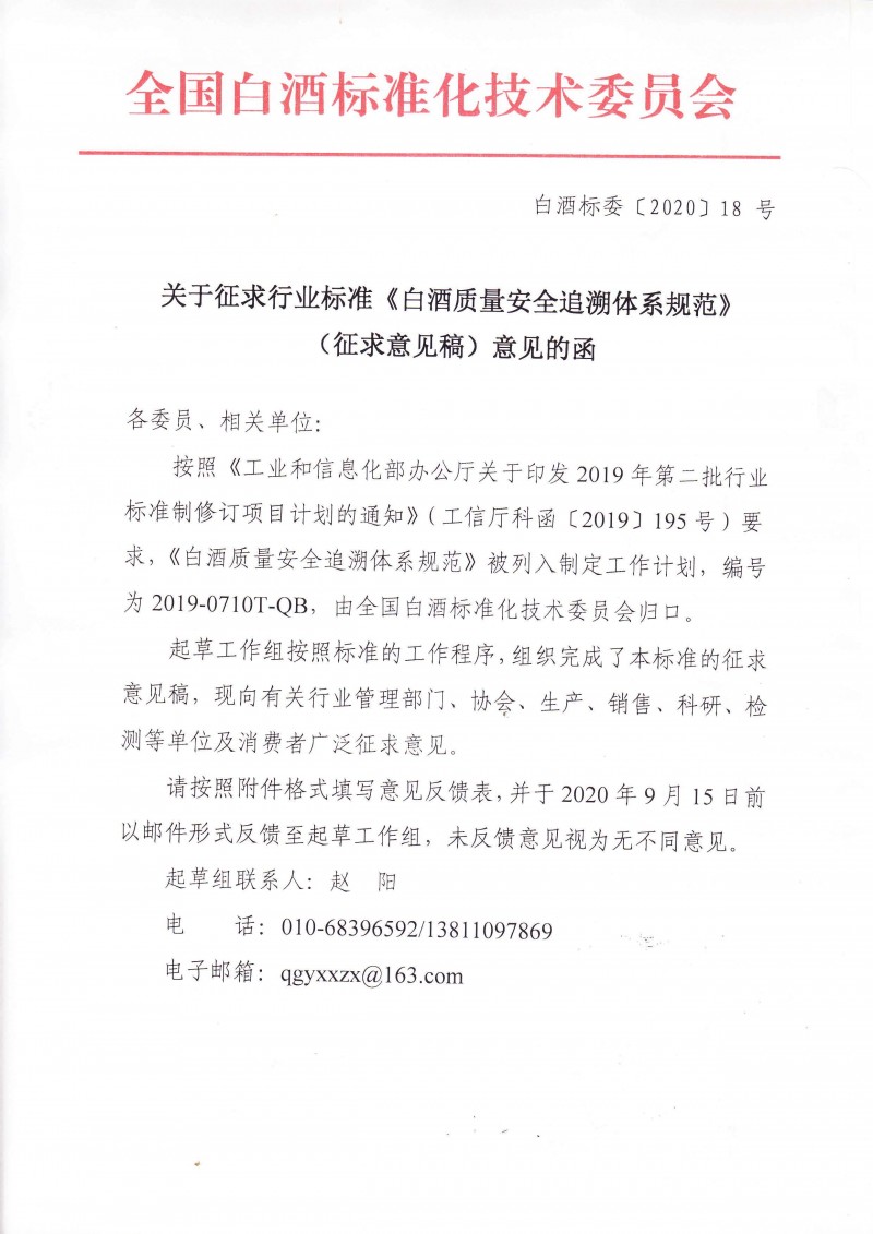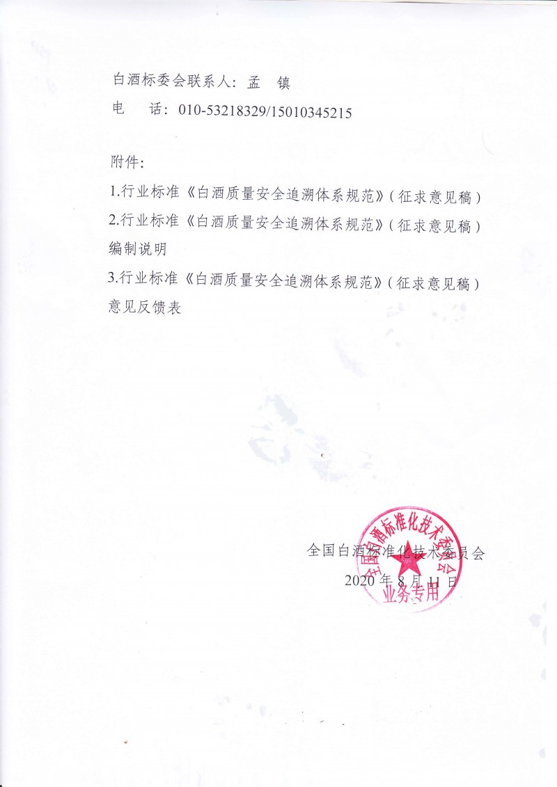 1.行業標準《白酒質量安全追溯體系規范》(征求意見稿)