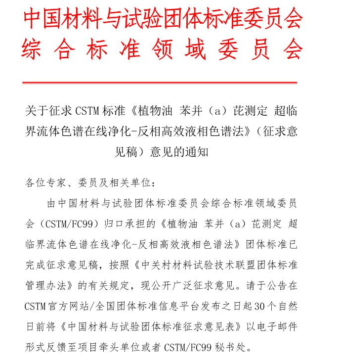 附件:cstm團體標準《植物油 苯并(a)芘測定 超臨界流體色譜在線凈化-反相高效液相色譜法》征求意見的資料.zip