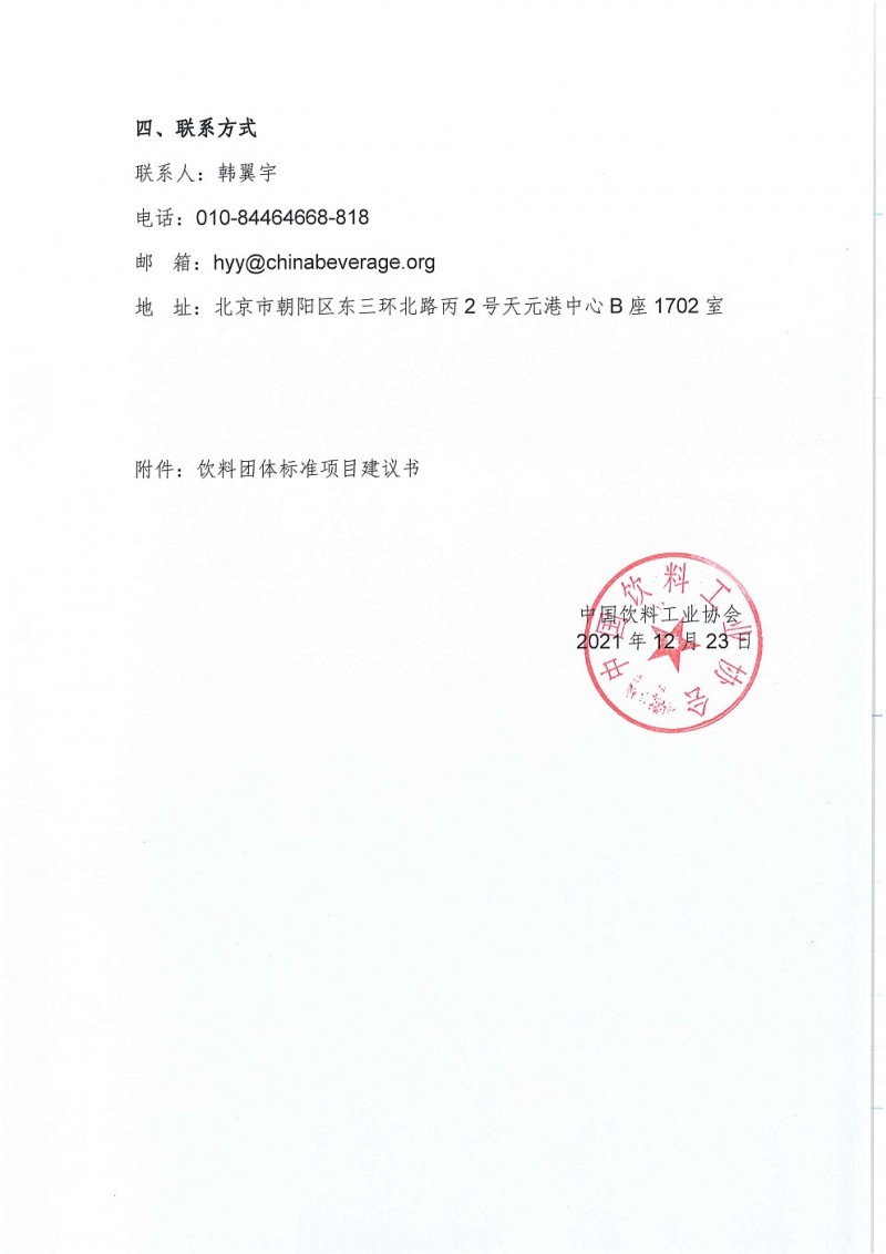 中國飲料工業協會關于征集飲料行業團體標準計劃項目的通知(中飲協[2021]104號)