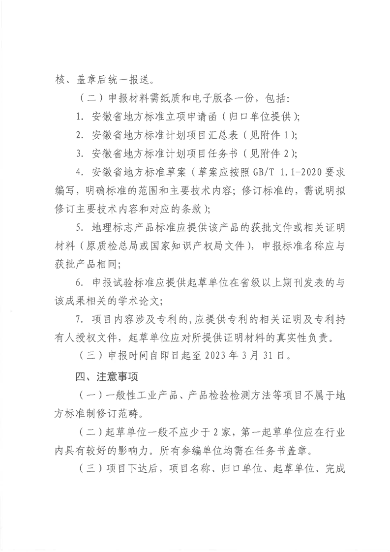 核心提示:安徽省市場監(jiān)督管理局關(guān)于申報2023年度安徽省地方標準制(修)訂計劃項目的通知