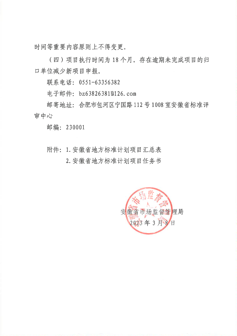 安徽省市場監(jiān)督管理局關(guān)于申報2023年度安徽省地方標準制(修)訂計劃項目的通知(皖市監(jiān)函[2023]123號)