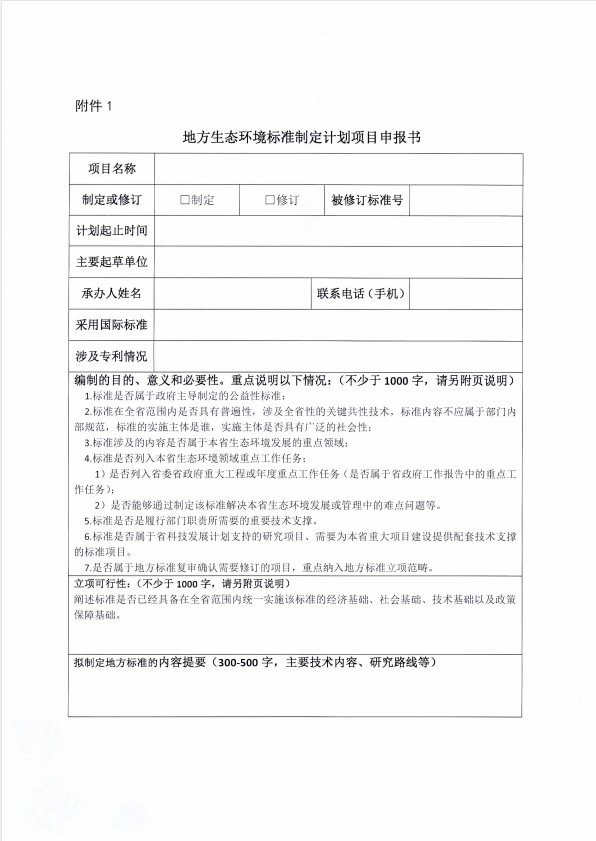 青海省生態環境廳關于申報2023年青海省地方生態環境標準制定計劃的通知