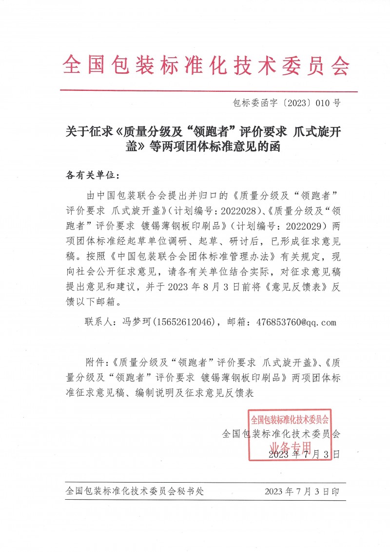 附件:《質(zhì)量分級(jí)及“領(lǐng)跑者”評(píng)價(jià)要求 爪式旋開蓋》團(tuán)體標(biāo)準(zhǔn)征求意見(jiàn)稿、編制說(shuō)明及征求意見(jiàn)反饋表