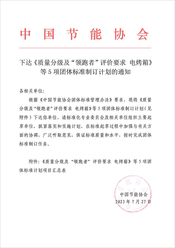 關于下達《質量分級及領跑者評價要求 電烤箱》等5項團體標準制訂計劃的通知.PDF
