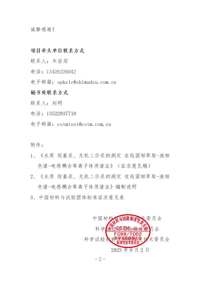 中關村材料試驗技術聯盟關于CSTM團體標準《水質 烷基汞、無機二價汞的測定 在線固相萃取-液相色譜-電感耦合等離子體質譜法》征求意見函(CSTM/FC98/TCO2[2023]008號)