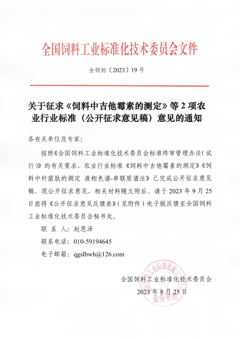 01.關于征求《飼料中吉他霉素的測定》等2項農業行業標準(公開征求意見稿)意見的通知.pdf