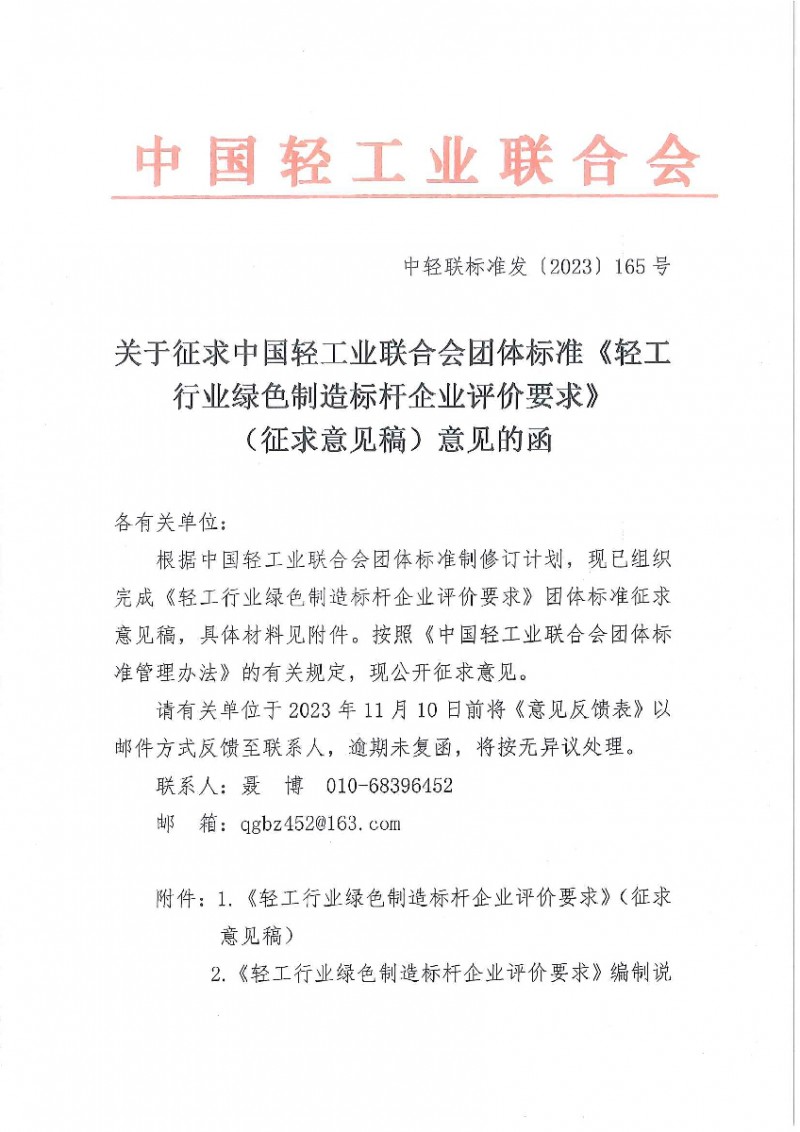 1、《輕工行業(yè)綠色制造標(biāo)桿企業(yè)評(píng)價(jià)要求》團(tuán)體標(biāo)準(zhǔn)(征求意見稿)