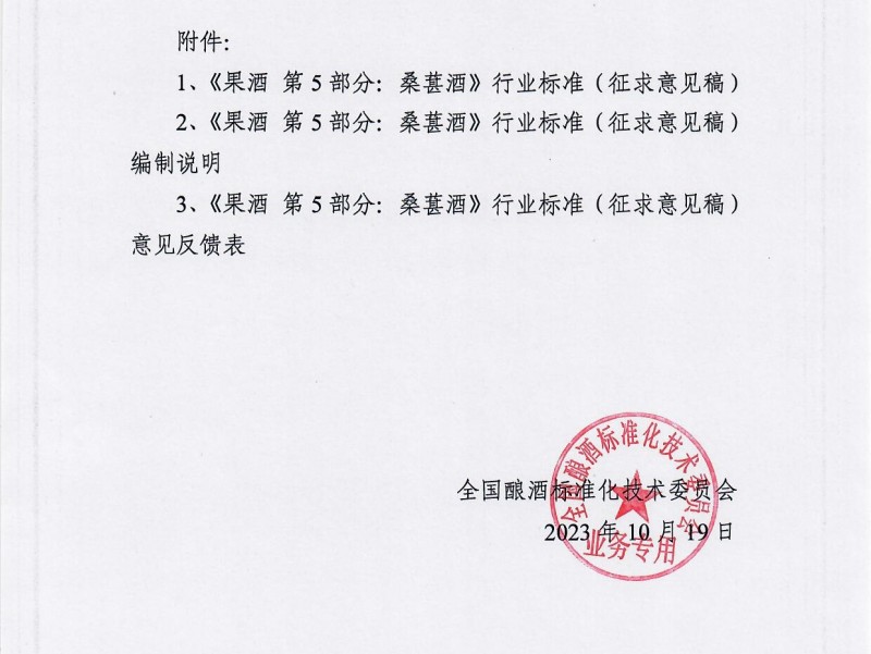 核心提示:全國釀酒標(biāo)準(zhǔn)化技術(shù)委員會關(guān)于征求《果酒 第5部分:桑葚酒》行業(yè)標(biāo)準(zhǔn)(征求意見稿)意見的通知,截止時間2023.11.19
