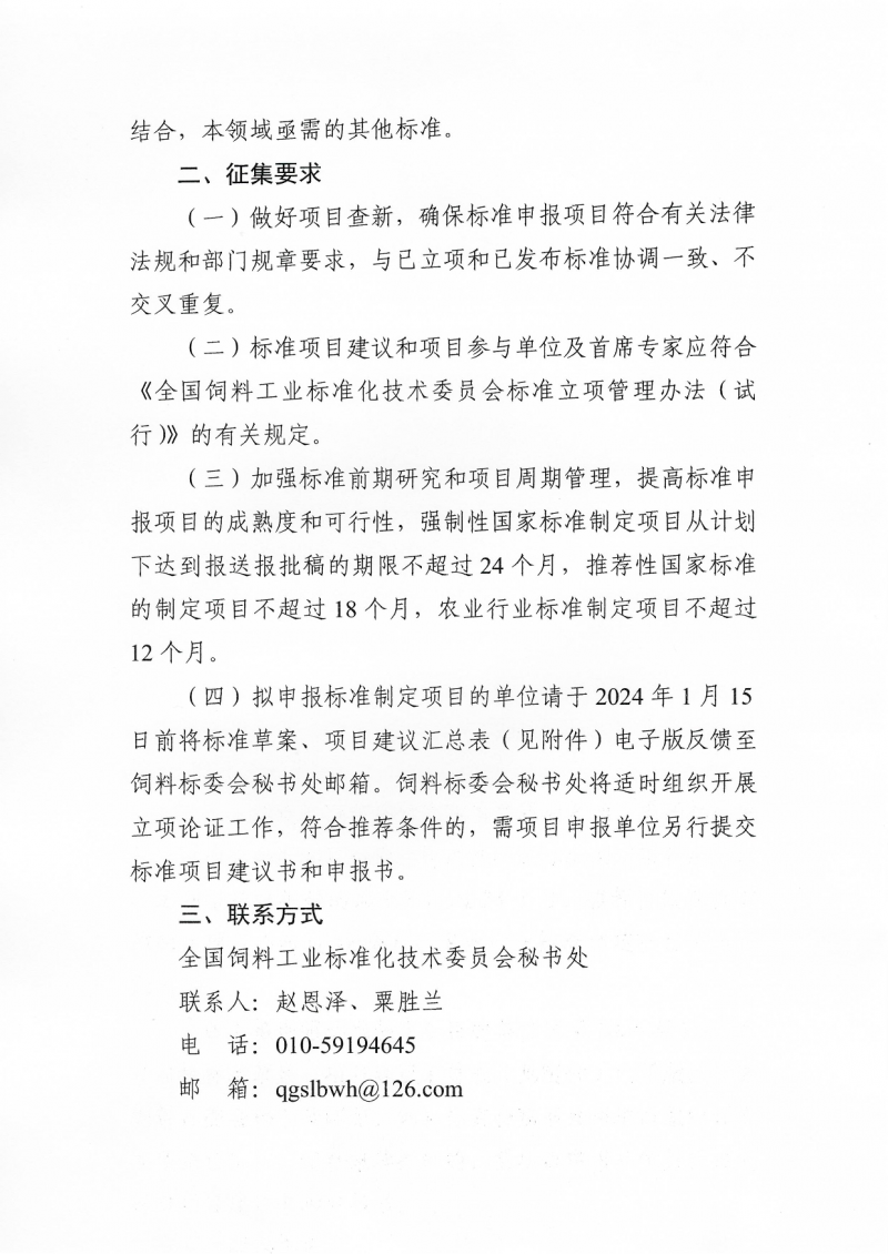 核心提示:全國(guó)飼料工業(yè)標(biāo)準(zhǔn)化技術(shù)委員會(huì)關(guān)于征集2024年飼料工業(yè)標(biāo)準(zhǔn)制定項(xiàng)目建議的通知