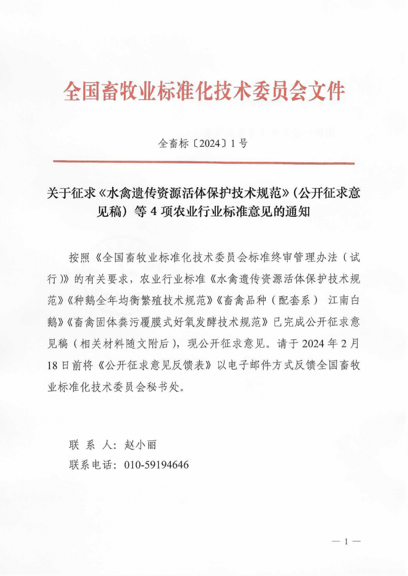 關于征求《水禽遺傳資源活體保護技術規范》(公開征求意見稿)等4項農業行業標準意見的通知.pdf