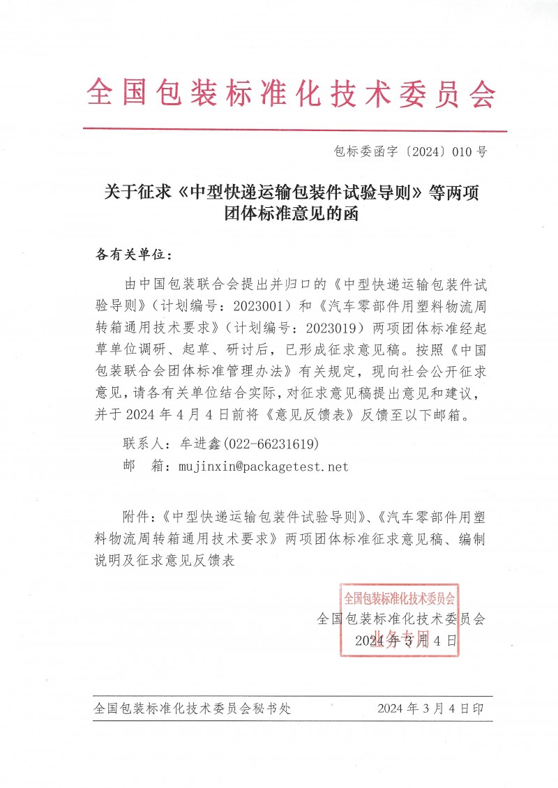 《中型快遞運輸包裝件試驗導則》(征求意見稿)意見反饋表