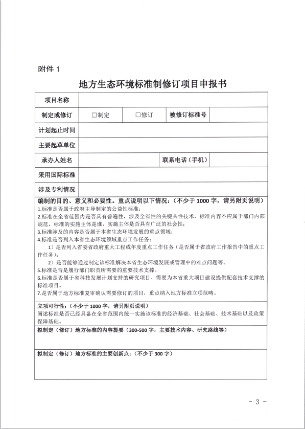 青海省生態環境廳關于申報2024年青海省地方生態環境標準制修訂項目計劃的通知(青生辦[2024]17號)