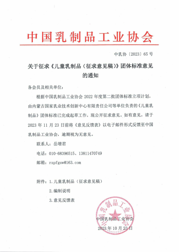 中國乳制品工業(yè)協(xié)會關(guān)于征求《兒童乳制品(征求意見稿)》團體標(biāo)準(zhǔn)意見的通知