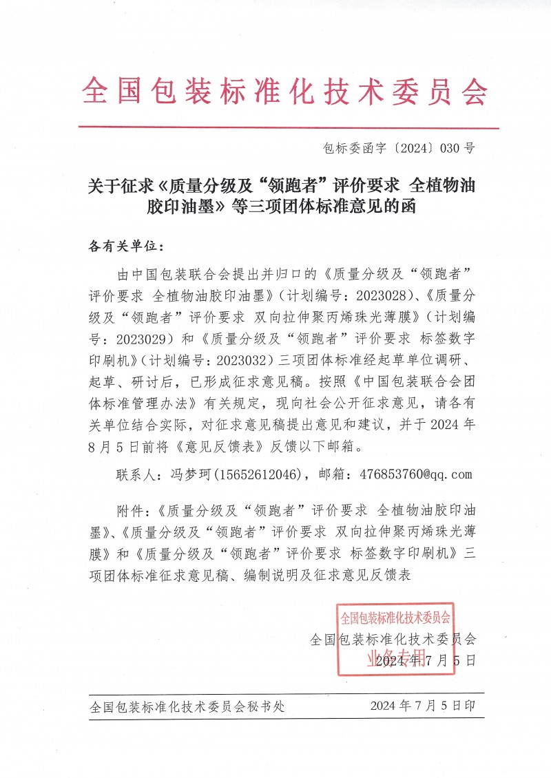 《質量分級及“領跑者”評價要求 全植物油膠印油墨》(征求意見稿)