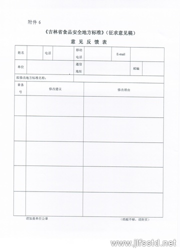 6、食品安全地方標準意見反饋表