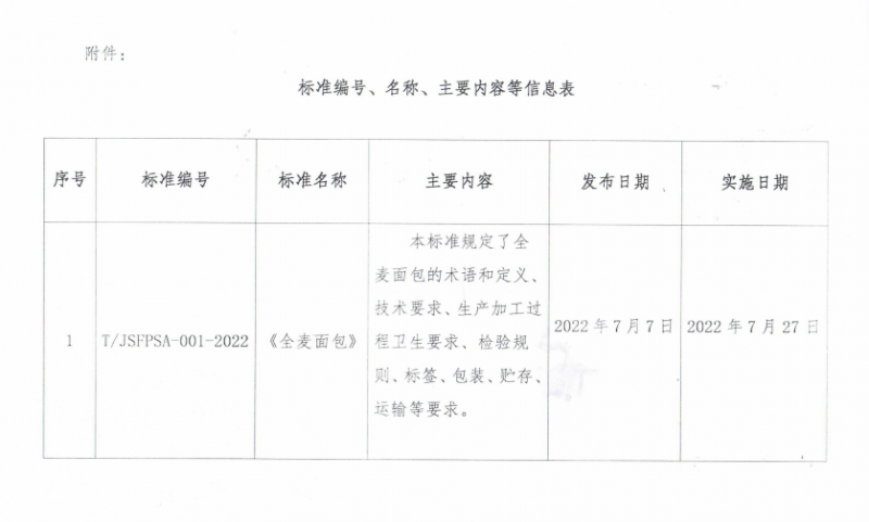 根據《中華人民共和國標準化法》以及國家標準化管理委員會、民政部《團體標準管理規定》的有關規定,江蘇省食品生產安全協會批準發布《全麥面包》團體標準(標準編號、名稱、主要內容等見附件),現予公告,自2022年7月27日起實施。