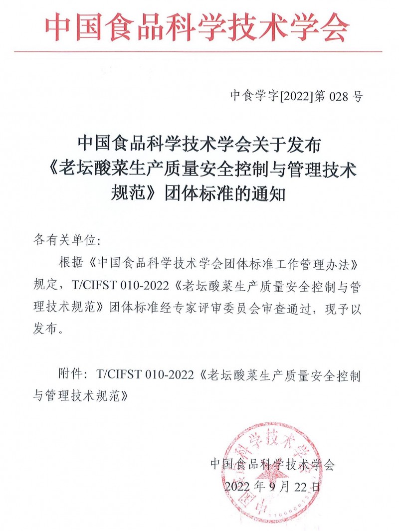 附件:T/CIFST 010-2022《老壇酸菜生產質量安全控制與管理技術規范》.pdf