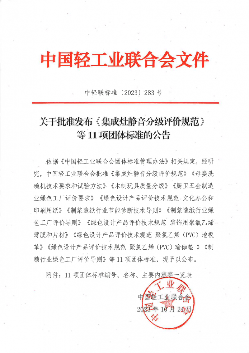 中國輕工業聯合會關于批準發布《制糖行業綠色工廠評價導則》等11項團體標準的公告(中輕聯標準〔2023〕283號)