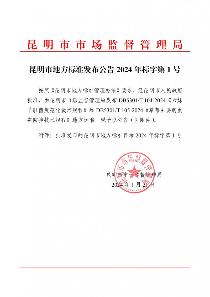 | DB5301/T 104-2024 | 《六妹羊肚菌規(guī)范化栽培規(guī)程》 | 2024年3月15日 | 2024年4月15日 | |