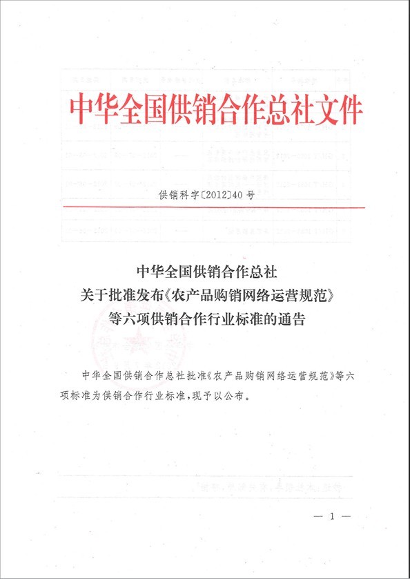 | 1 | GH/T 1078-2012 | 農產品購銷網絡運營規范 | —— | 2012-07-09 | 2012-08-01 |
