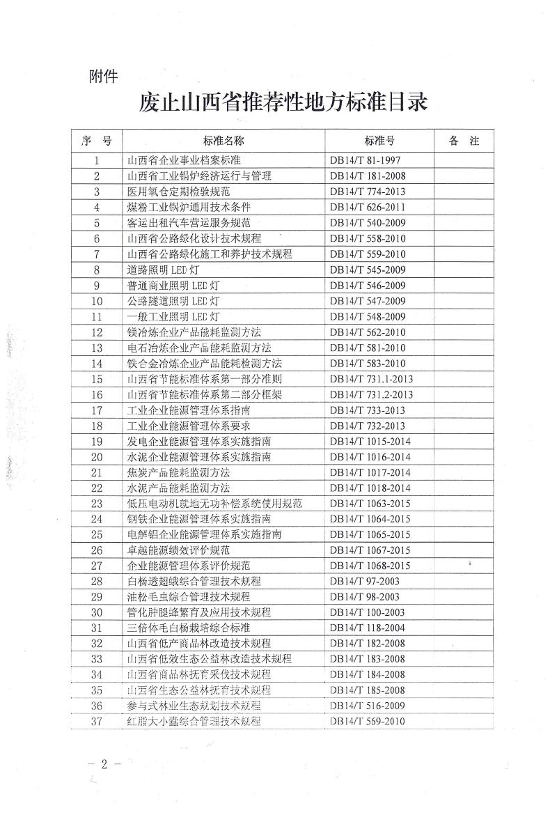 附件:廢止山西省推薦性地方標準目錄