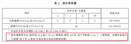 金黃色葡萄球菌、沙門氏菌、酵母菌的限量直接引用GB 29921《食品安全國家標準 預包裝食品中致病菌限量》中的相關指標。