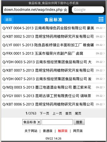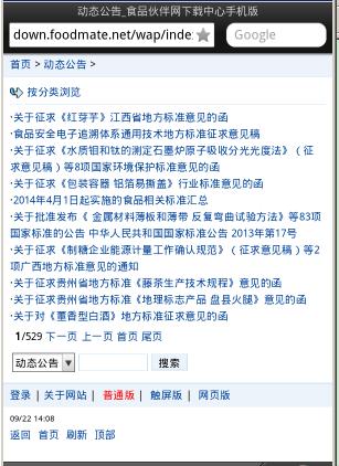 手機可以訪問:食品標準、食品資料、動態(tài)公告、專題四個欄目。